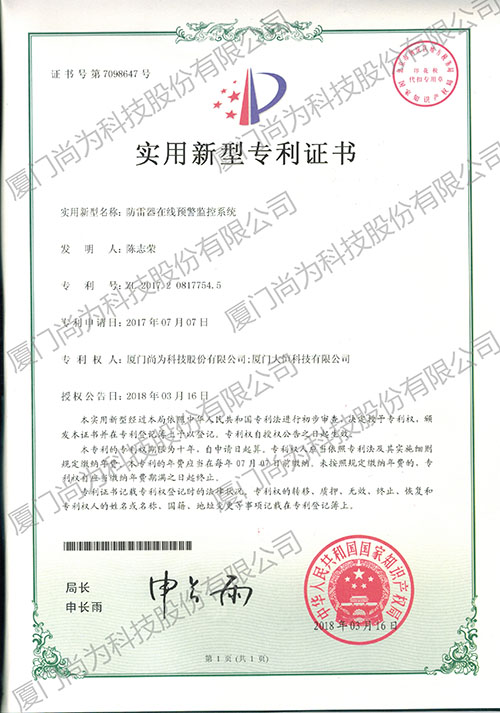 專利一:防雷器在線預(yù)警監(jiān)控系統(tǒng)